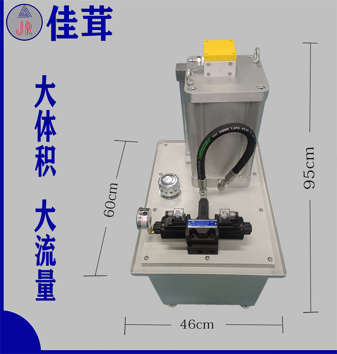 佳茸大流量氣動液壓站研制成功,油箱容積:99L;流量:50~60L/min;輸出壓力:6-10Mpa